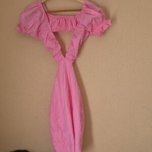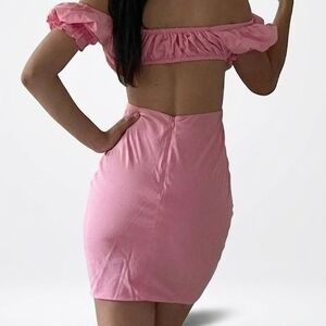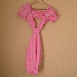 ALAMOUR ..Pink Puff-Sleeve Mini Dress with Deep V and Side Cutouts