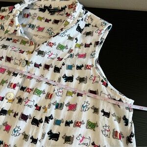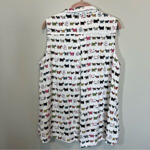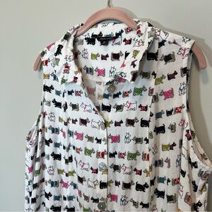 John Mark women’s white Scottie dog novelty print button up tank top. Wire in collar for structure.
