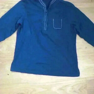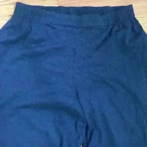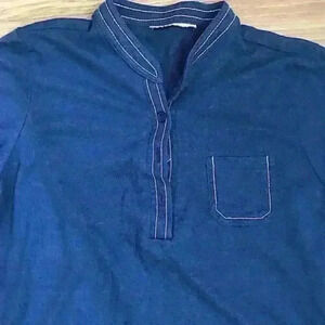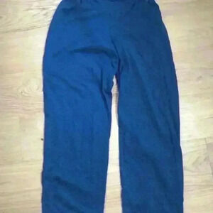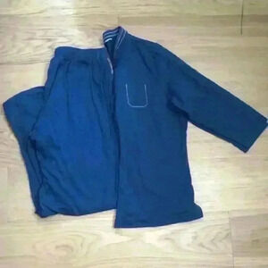 Gently worn size M Cathy Daniels blue pajama set with white threading around pocket and neck line.