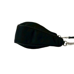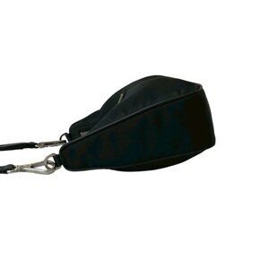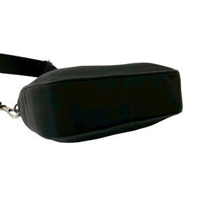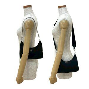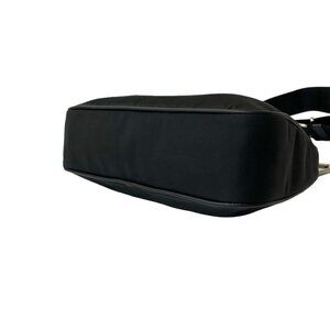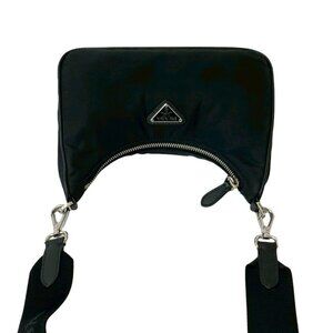 This is an authentic Prada Re-Edition Triangle Logo Nylon Saffiano Leather Semi-Shoulder Bag in black. The bag features the iconic Prada triangle logo, a nylon exterior with Saffiano leather trim, and adjustable shoulder strap for versatile wear.