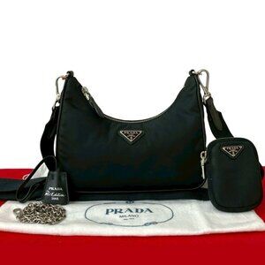 Prada Re-edition Triangle Logo Nylon Saffiano Leather Bag