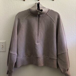 Varley Milano Half-Zip Sweatshirt. In like new condition. Featuring raglan sleeves, a high neck, and sleeve panelling.