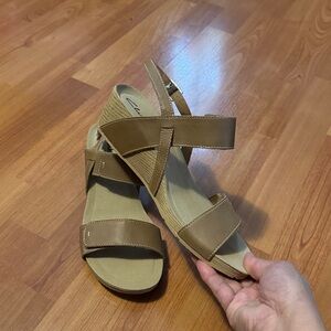 Elegant brown leather sandals with buckle closure. Ideal for everyday comfort.