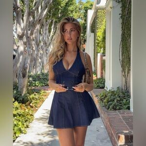 Zara Navy Halter denim jeans mini Dress