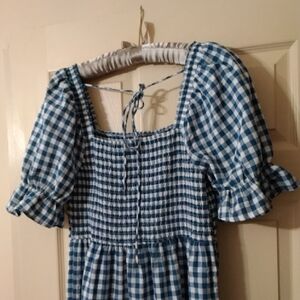 Blue Gingham Smocked Midi Dress