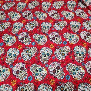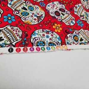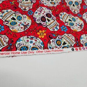 Quilting Craft Fabric Red Sugar Skull Cotton Blend David Textiles 1yd-9"