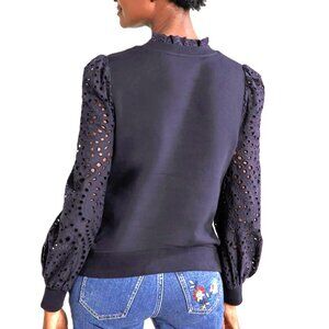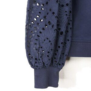 Boden Broderie Blouson Cotton Jersey Knit Sweatshirt Navy 8