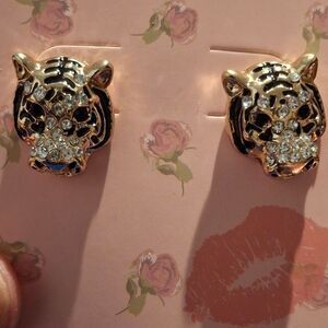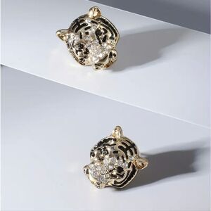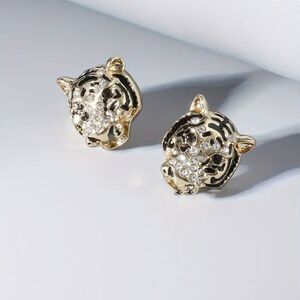 18K Gold Plated Rhinestone Lion Stud Earrings