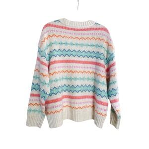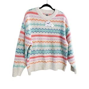 American Eagle Womens Crew Neck Knit Sweater Multi Color Zigzag Print NWT XL