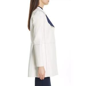 ST JOHN Nautical Alabaster Navy Reversible Leather Long Jacket Size 2 $2495