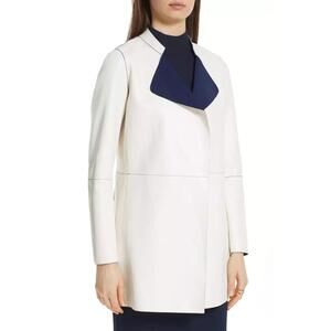 LKNW ST JOHN Nautical Alabaster Navy Reversible Leather Long Jacket Size 2 $2495