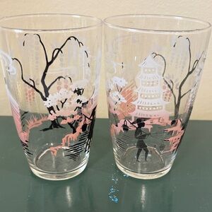 Vintage Libbey Mid Century Japanese Cherry Blossom Glasses. Set of 2