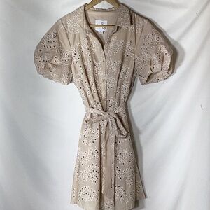 NWT SAM EDELMAN Schiffli Mini Shirtdress Puff Sleeve Eyelet Size 14