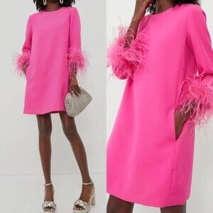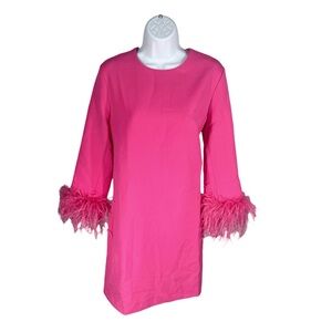Tuckernuck Hot Pink Feather Trim Mod Mini Dress Party Cocktail M NWT