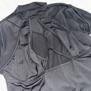 Featuring super strapped front design and mock neck