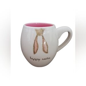 Rae Dunn ceramic mugs set of 2 features a pink interior, with "Happy Easter" printed on the outside with upside down bunny ears. No chips or cracks! Just in time for Easter!