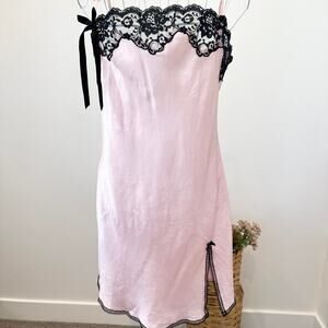 INSANE vintage y2k pink & black silky babydoll mini slip dress with bow and lace details🩷