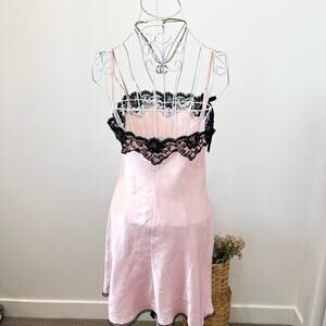 INSANE vintage Victorias secret y2k pink & black silky babydoll mini slip dress