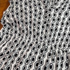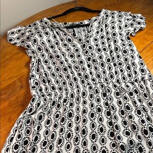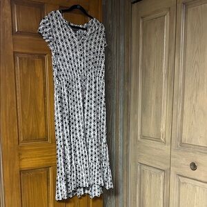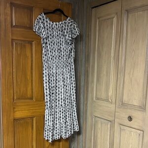 Stylish black and white patterned dress maxi with short sleeves. Perfect for any occasion. Pockets. Machine washable.