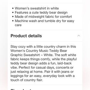 Women's Country Music Teddy Bear Graphic Sweatshirt new 🆕