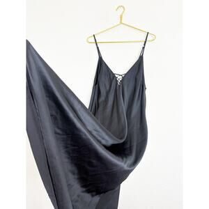 Victoria’s Secret Black Satin Butterfly Midi Slip Dress Size Large Y2K Whimsigoth Lingerie