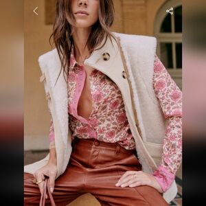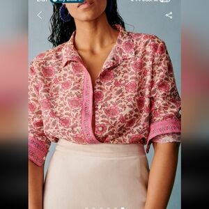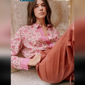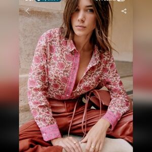 This is Sezane's iconic Pierro shirt in a chic pink floral print. This will make a great stable in your closet.