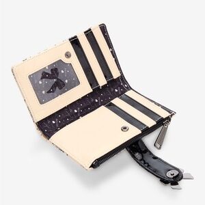 Featuring an allover design of Disney Princess sketches, this wallet includes a metal bow charm, a zippered pouch, card slots, and a clear ID sleeve.