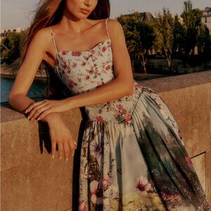 Anthropologie The Muse Basque-Waist Midi Dress. Easter, Garden PArty, Shower!