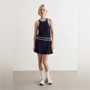 ✨ Sporty & Rich Tennis Mini Dress Navy White Trim Pleated Athletic Size S NWT Preppy Chic Activewear