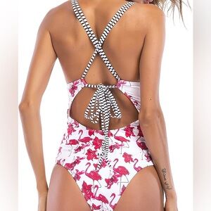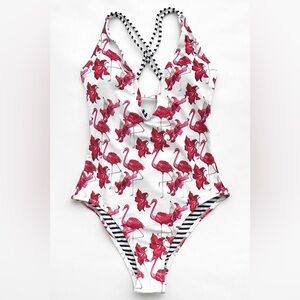 #Cupshe #NWT #FlamingoPrint #OnePieceSwimsuit #FloralSwimwear #BeachBum #VacationReady #SummerStyle #ResortWear #TropicalVibes #StripedAccents #SwimsuitSeason #FlamingoCore #WaterReady #NewWithTags #flamingo