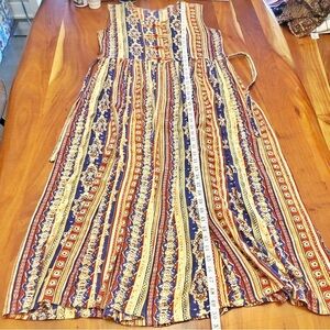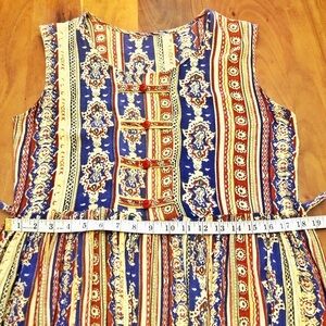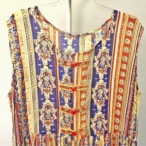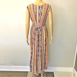 Vintage Rear Boho Pattern Paisleys Hippie Floral Cottagecore Colorful Festival Scoop Neck Sleeveless Maxi Dress.