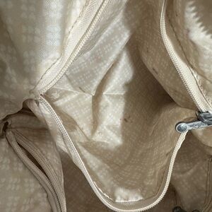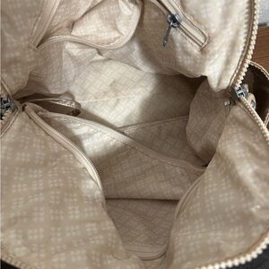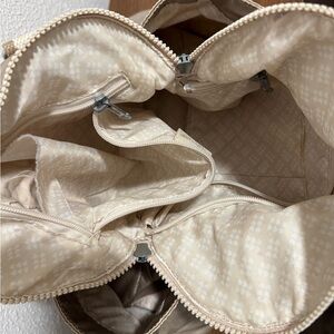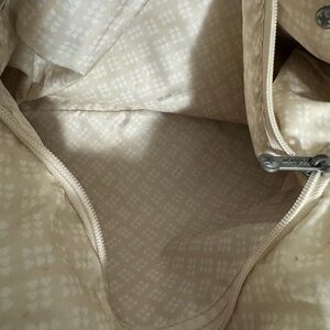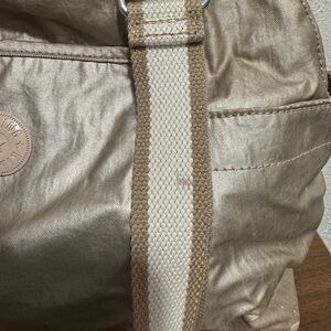 Kipling Metallic Champagne Shoulder Bag with Cream & Tan Striped Straps