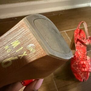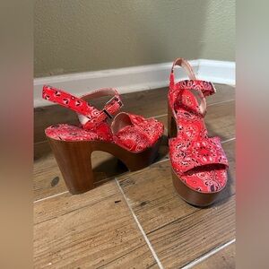Red Bandana Print Platform Heels – Size 7.5 US – Bold & Retro Chic!