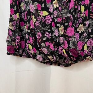 This stylish and ultra figure flattering sleeveless top features a vibrant floral pattern in black and pink. Perfect for adding a pop of color to your wardrobe.