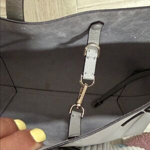 Elegant gray tote bag perfect for everyday use. Features a sleek design with durable handles. 1 mini stain inside suede material inside bag but I’m sure it can be taken out it’s so minor !!! Other than that perfect condition! Considered soft leather