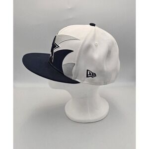 The NEW ERA Dallas Cowboys 9Fifty Snapback Shark Tooth in White/Navy is an officially licensed cap for fans of the National Football League. Made by New Era, this one-size fit all hat features the iconic Dallas Cowboys team colors, making it the perfect accessory for football enthusiasts. With its stylish shark tooth design, this cap is a must-have for any Cowboys supporter looking to show their team pride during the football season. Made in China, this unisex adult cap is a versatile and stylish way to represent your favorite football team.