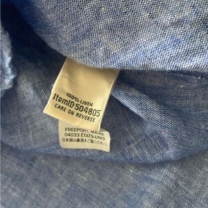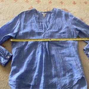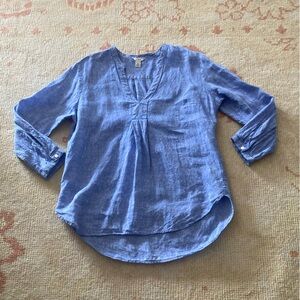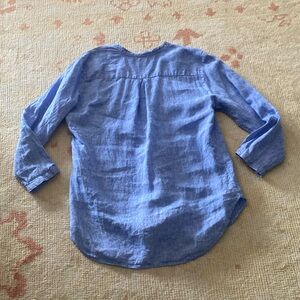LL Bean Splitneck Summer Blue Chambray 100% Linen Tunic in medium petite (MP). Classic quality, beauitful color. Gorgeous condition.