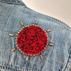Rémi Relief is a Japanese brand launched by Yukata Goto in 2008. It offers high quality, vintage inspired fashion blending California surf/ skate culture with Japanese craftsmanship. The brand is known for its meticulous attention to fabric aging, special washing techniques, and comfortable, worn-in looks. This denim shirt retains authentic details of the western shirt made of 8oz ultra soft distressed denim with snap-fastening cuffs, front pockets and placket. Intricate beading at front and back yokes elevate this one of a kind shirt.