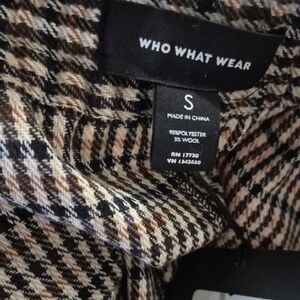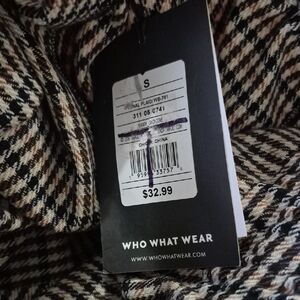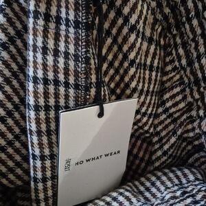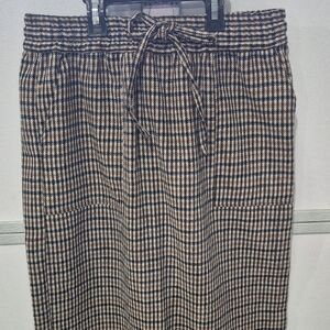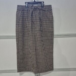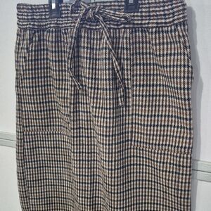A versatile midi skirt with an elastic drawstring waist for comfortable wear. Features a classic black and cream houndstooth pattern for polished everyday style. Designed for easy pairing with sweaters, blouses, or blazers. Lightweight and flattering silhouette for all-day comfort.