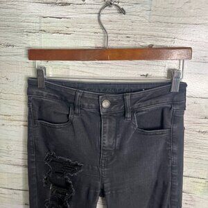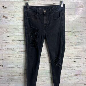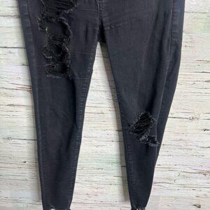 American Eagle Outfitters High Rise Jeggings Black Jeans 6 short distressed