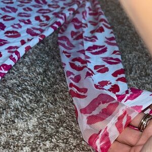 White jacket with hot pink and coral red lips!