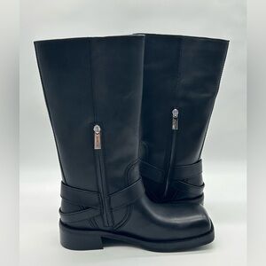 Michael Kors Crosby Moto Boots Black Leather Biker Boots Size 10 M New With Box