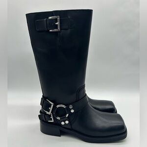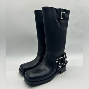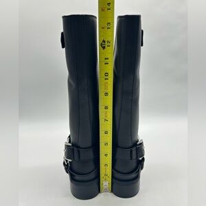 Michael Kors boots, Crosby moto boots, biker boots women, black leather boots, MK boots, moto style boots, buckle boots, combat moto boots, designer boots, leather mid calf boots, women boots size 10
