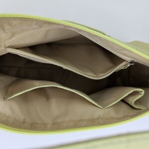 This bag is new with tags and is in excellent condition. It's a gorgeous light lime green color and is alligator embossed.