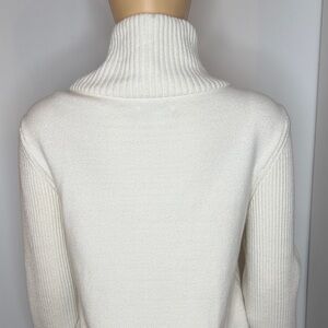Keywords: Sonoma sweater, quarter zip ivory sweater, cream knit pullover, mock neck top, ribbed sleeve sweater, women’s large sweater, neutral winter sweater, cozy cotton blend sweater, casual warm pullover
