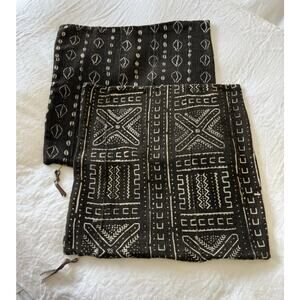 Restoration Hardware | 2 Shams | Washed Black Tan Linen African Mud Cloth 21x21”