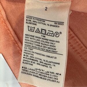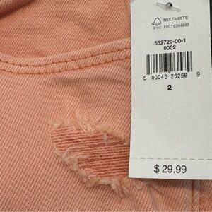 New with tags Old Navy mid-rise denim shorts in a pretty coral peach tone. Size 2, 5” inseam, cuffed hem, and light distressing for a casual vibe. Made with LYCRA® stretch fiber for extra comfort and shape retention. Zip fly and button waist.