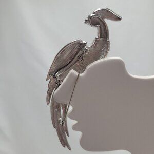 Vtg Monet Large Bird of Paradise Brooch Pin Pave Rhinestone Silver Tone Elegant