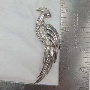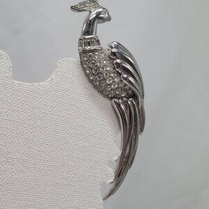 vintage pin, Monet jewelry, rhinestone brooch, peacock design, bird brooch, silver tone pin, statement jewelry, collectible brooch, crystal pin, elegant accessory, gift for her, vintage bird pin, brooch collection