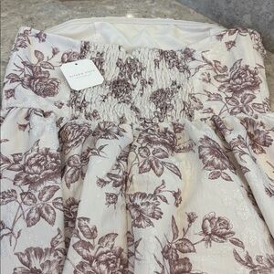 Altrd State floral mini dress. Strapless with silicone tape lining and side boning for added structure. Beautiful floral jacquard. Lined. Smocked zippered back. Size large m. New with tags attached